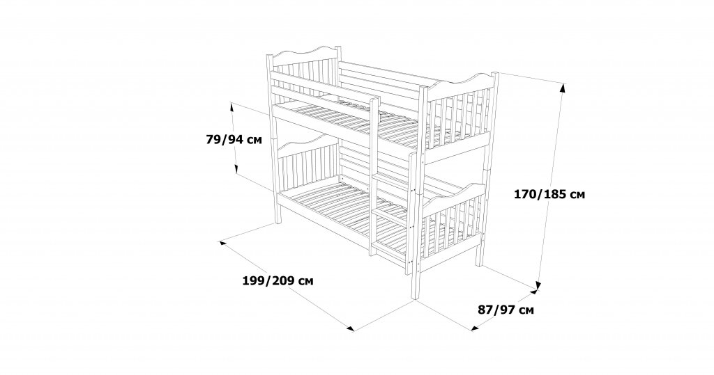 | Висота від підлоги до сп. місця | нижнього – 26,5 см; верхнього – 116 см |