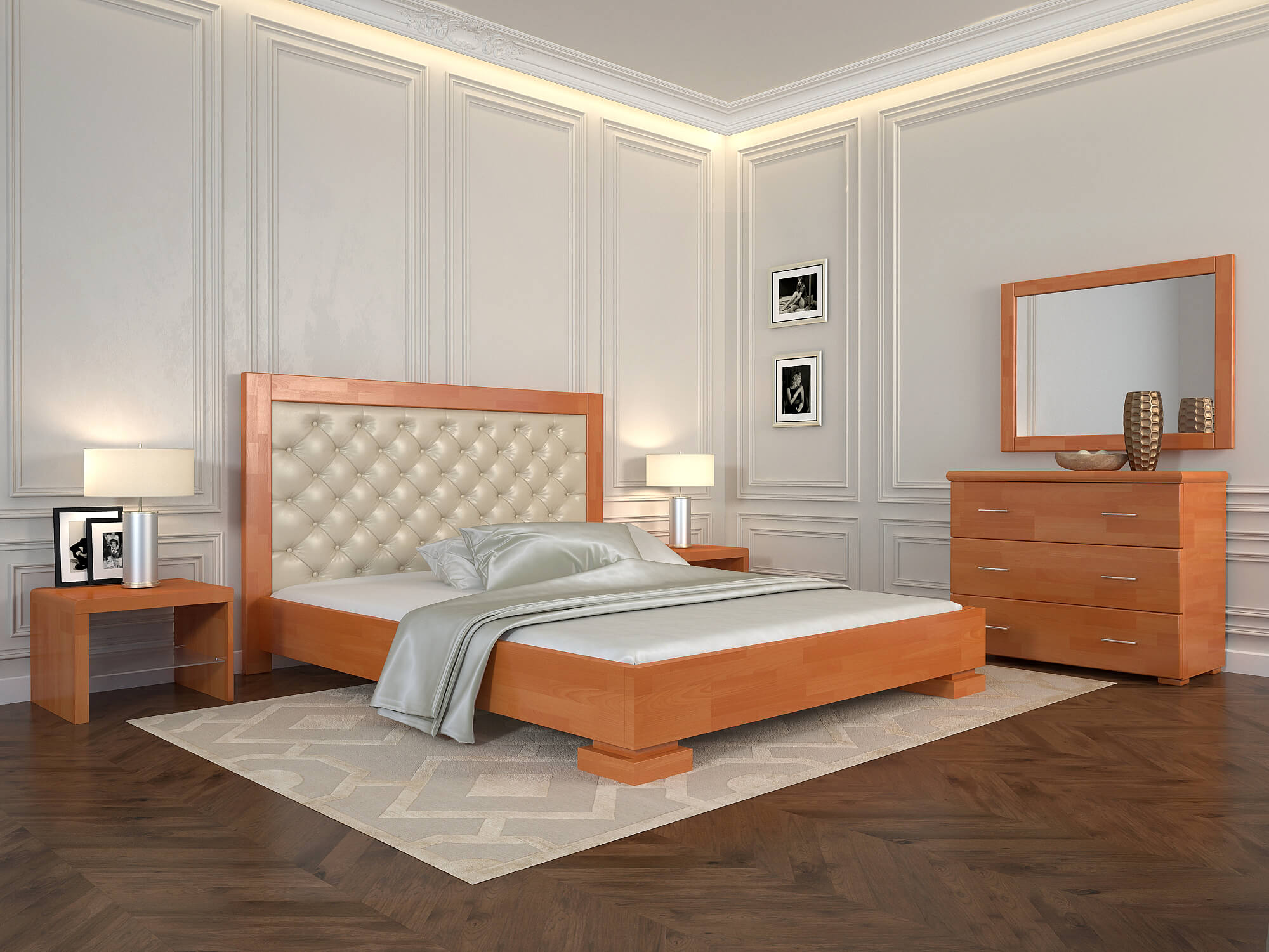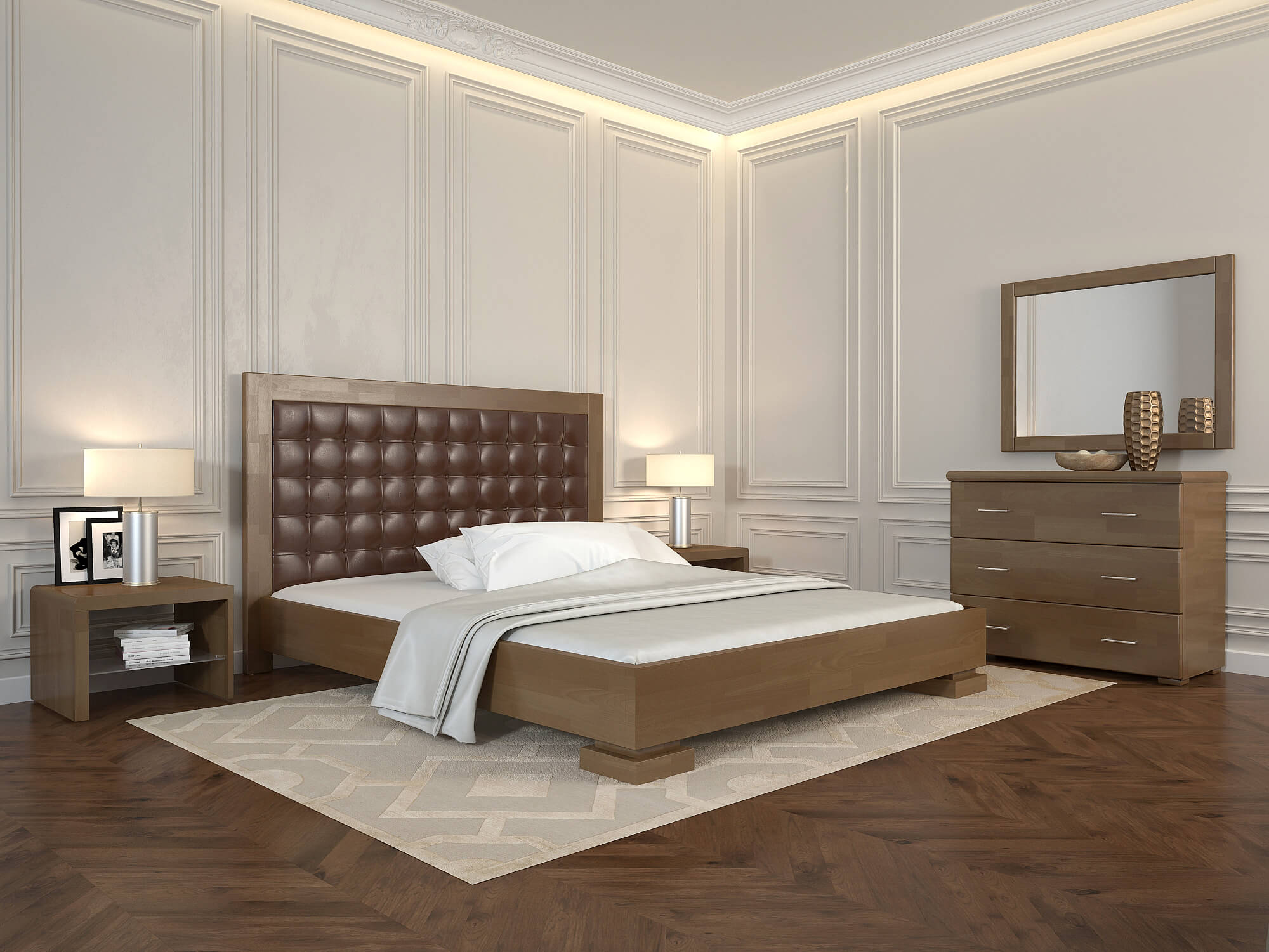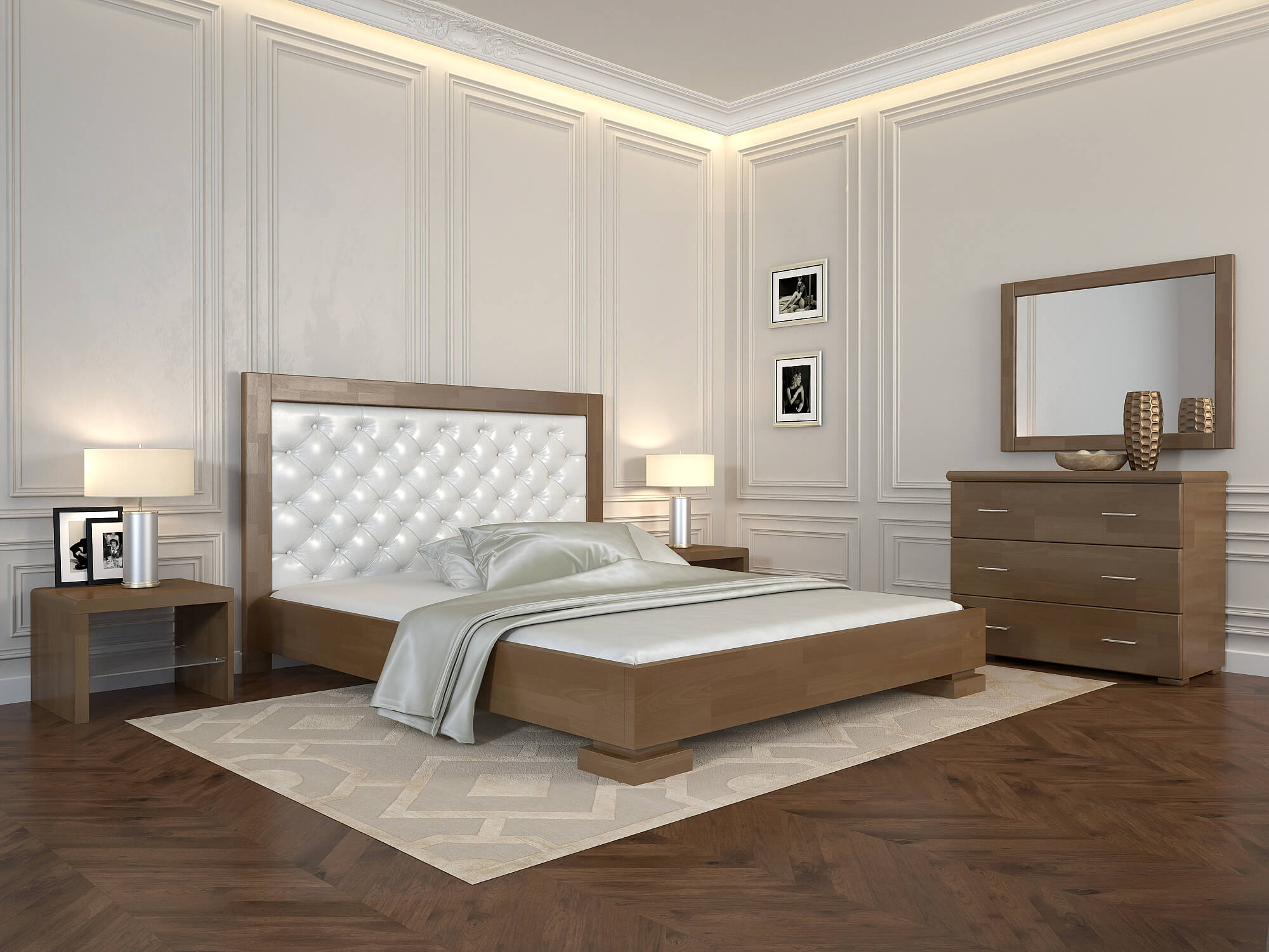 Дерев’яне ліжко “Подіум” представляє собою сучасну та дуже вишукану модель, виконану з натурального соснового або букового щитів.