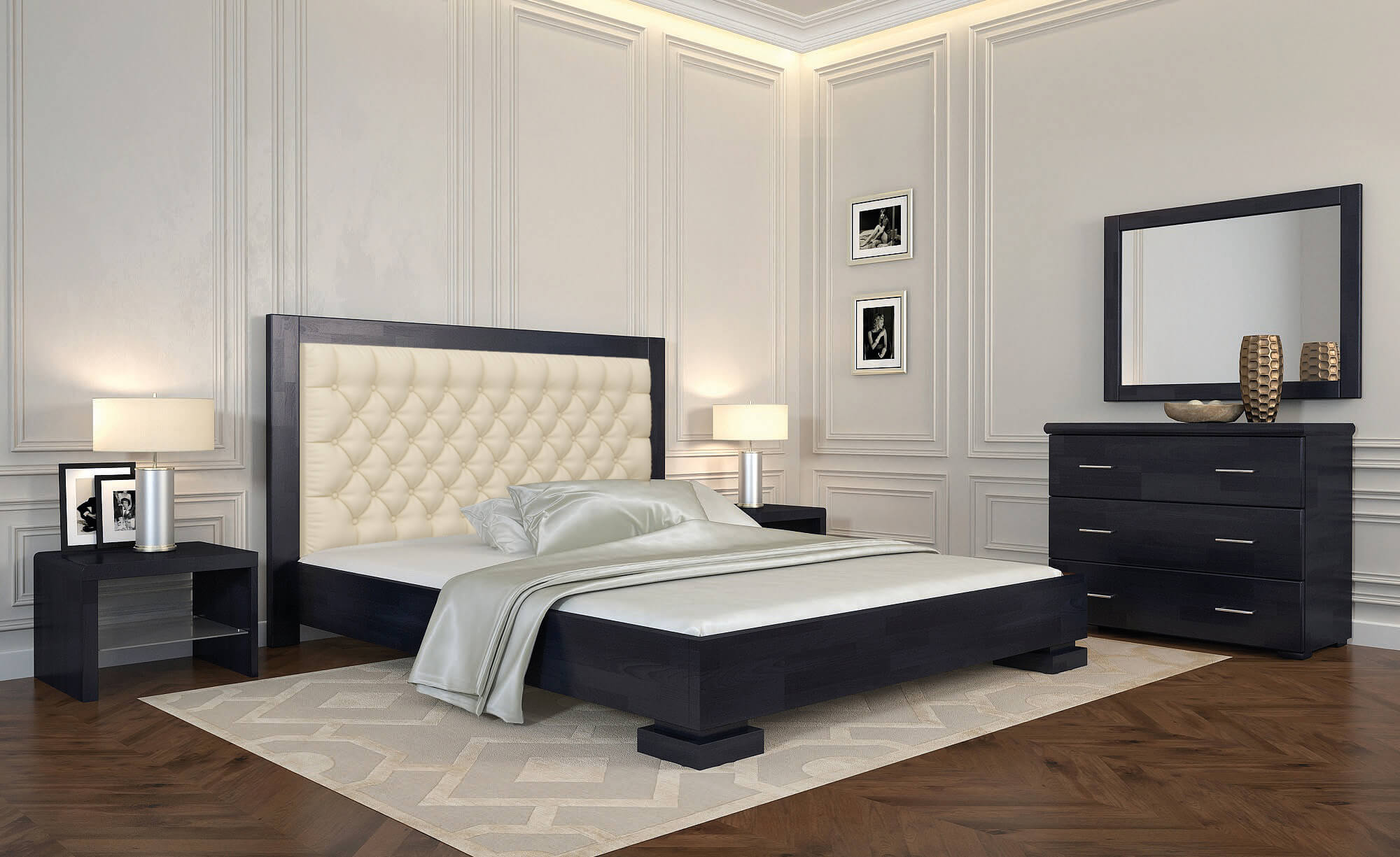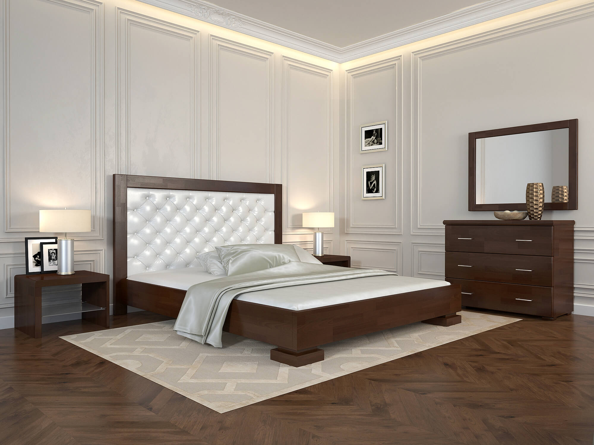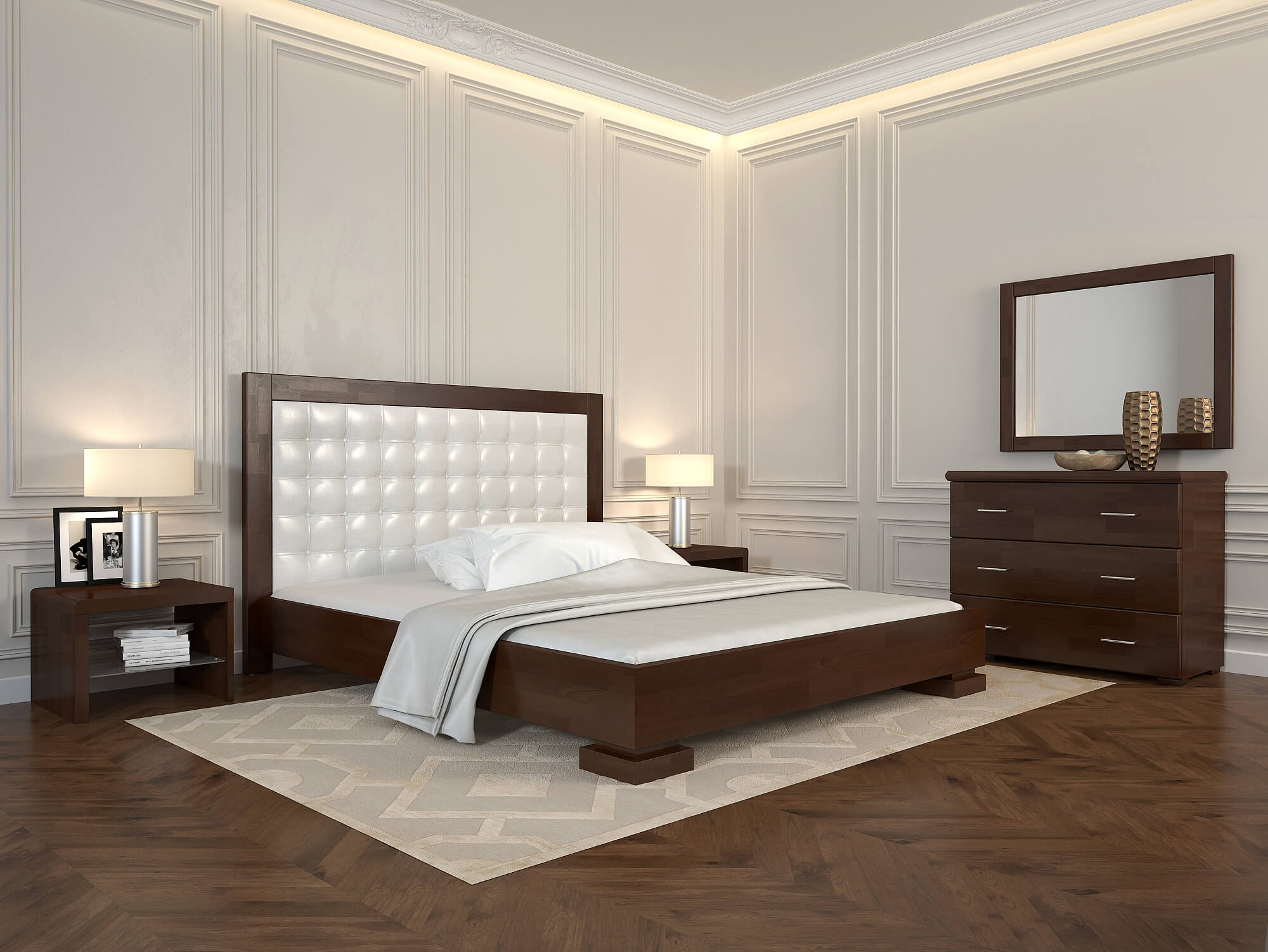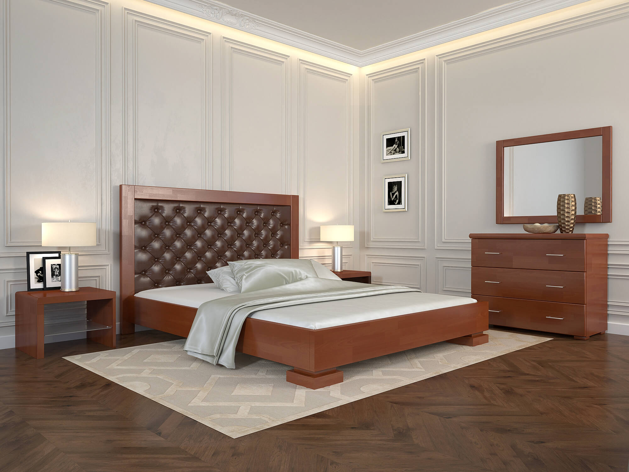 Дерев’яне ліжко “Подіум” представляє собою сучасну та дуже вишукану модель, виконану з натурального соснового або букового щитів.