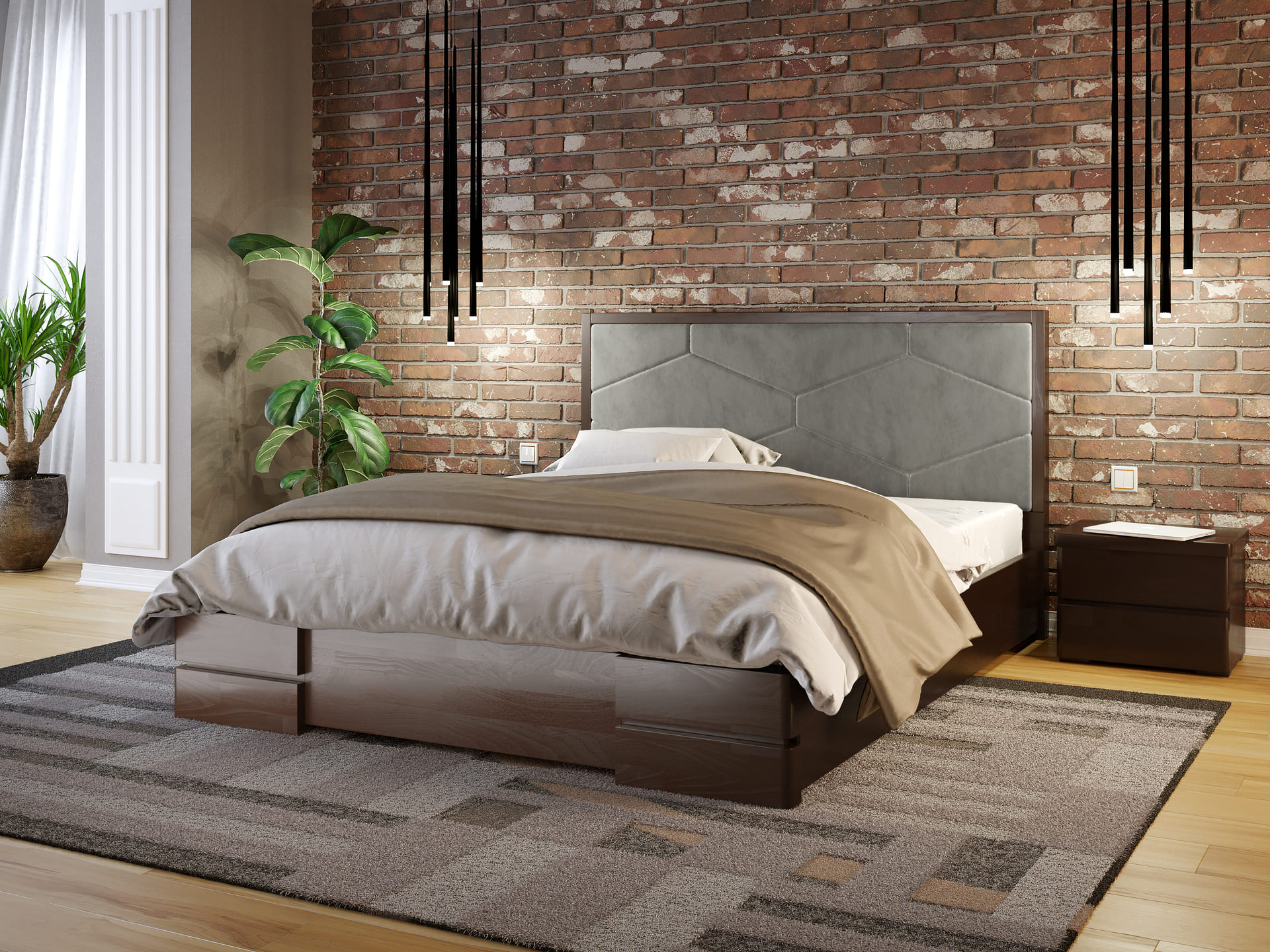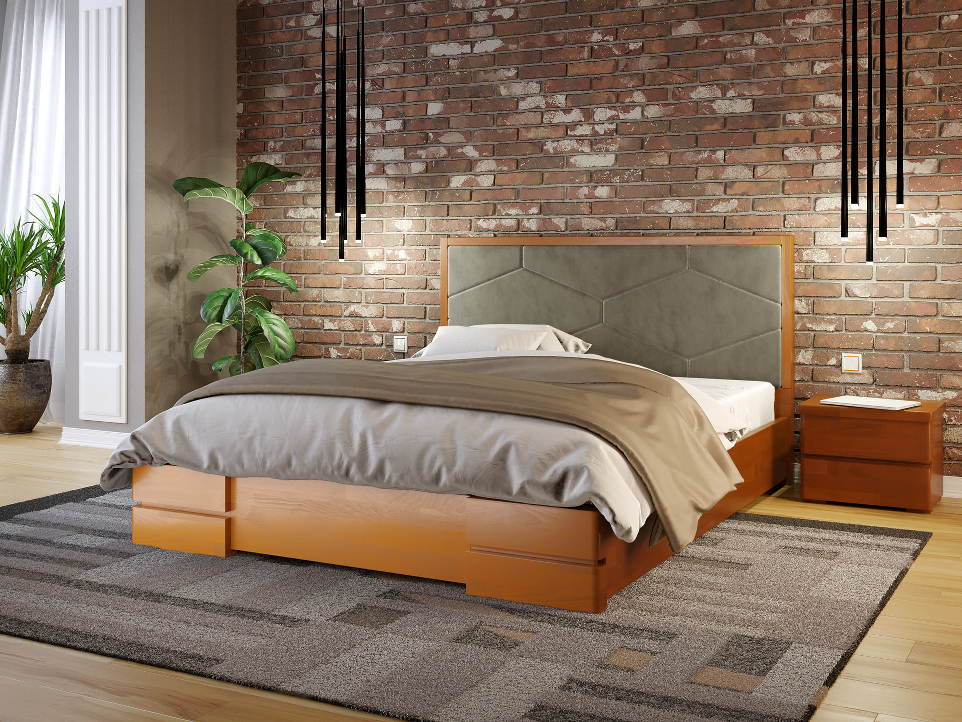 Основа під матрац: ортопедичні ламелі шириною 5,3 см. Відстань між ламелями до 3,8 см.