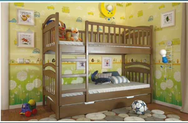 Ліжко трансформер: при потребі можна розкласти на два односпальних. Також, можна доукомплектувати шухлядами, яких є два вида-подвійна (фасад дерево, короб ДСП), або суцільна довга (повністю дерев’яна) на усю довжину ліжка, яка може бути використана, як додаткове спальне місце (розмір спального місця 180см*75см та висота матрацу додаткового спального місця не повинна перевищувати 14 см).