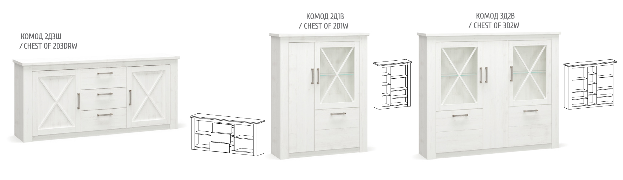 | Модель | Комод 2Д 1В, Комод 3Д 2В, Комод 2Д 3Ш |