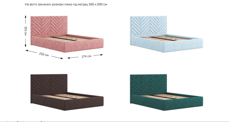 - Різноманітність розмірів: ліжко може бути виготовлене з різними розмірами спальної частини.