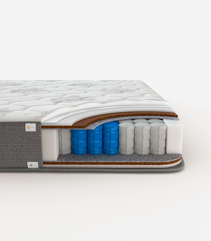 Universal pocket spring – 5-ти зонний пружинний блок, кожна пружина якого поміщена в окремий чохол, виготовлений із спанбонду, чудово пропускає повітря. Завдяки зонуванню пружинного блоку забезпечується правильне положення хребта для підтримки його природного стану під час сну.
