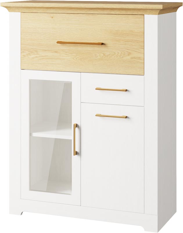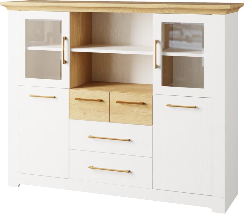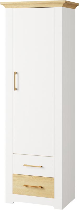 Меблі із системи Валеріо можна підібрати для повної комплектації спальні чи вітальні. Тепла структура елементів кольору дуб кам’яний у композиції з білосніжним відтінком сосни водевіль створюють неповторну композицію гармонії та затишку у вашій оселі.
