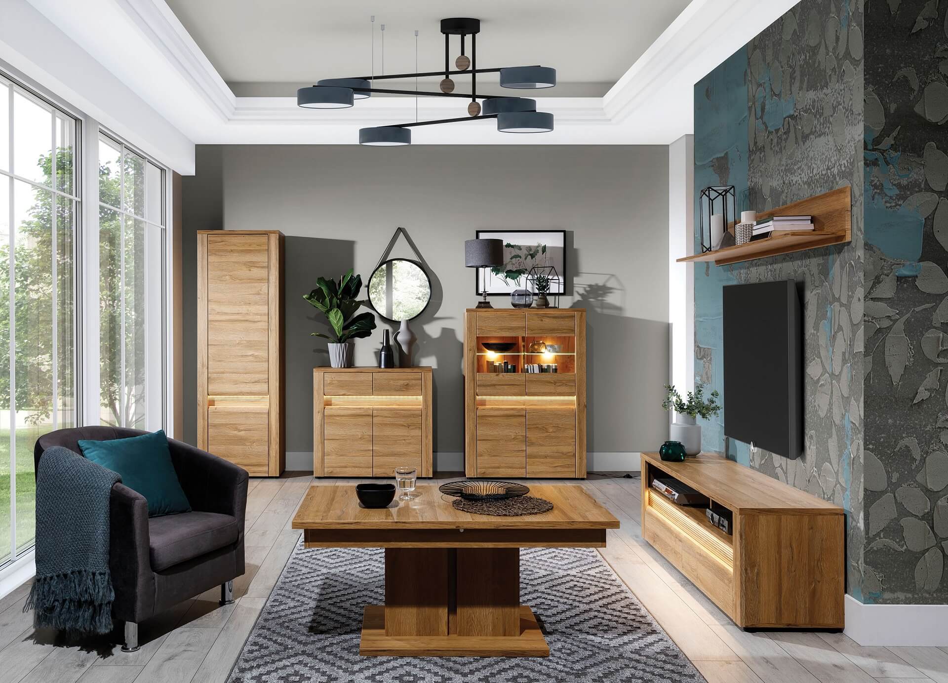 | ОБРАТИ ЕЛЕМЕНТИ | Пенал 2Д, Пенал вітрина 2Д, Комод вітрина 4Д, Шафа 4Д, Стіл журнальний, Стіл кухонний, Комод 2Д/2Ш, Комод 3Д/2Ш, Полиця навісна 915, Полиця навісна 1501, Тумба ТВ |