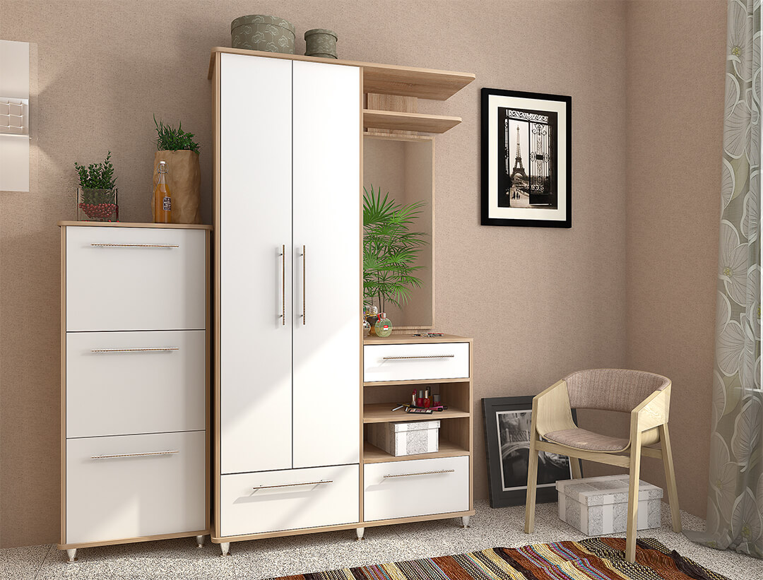 Передпокій «Ніагара» від Сокме – зразок стилю і функціональності. Продукція виконана в ультрамодному відтінку «венге» та класичному білому. Дана модель повністю доводить, що будь-який інтер’єр можна зробити неординарним. Передпокій укомплектована висувним ящиком, високою шафою й полицею, міцної вішалкою. Шафа поєднується з секцією, яка складається з тумби, висувних ящиків, дзеркала та невеликої полки над ним.