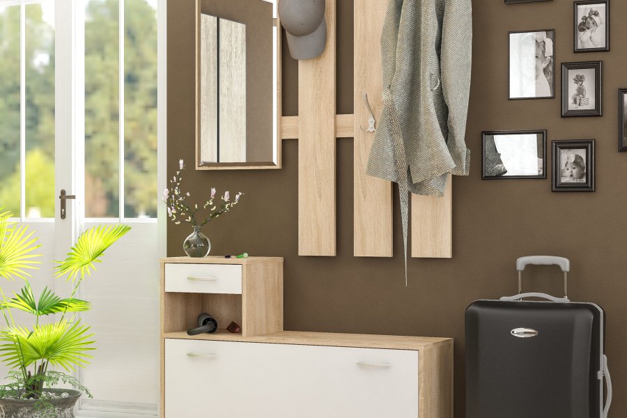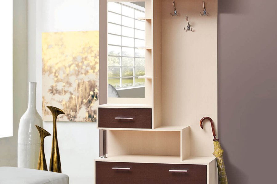 Передпокій Аміна від Світу Меблів – практичний, оригінальний та зручний передпокій виготовлений у сучасному стилі. Передпокій Аміна – незважаючи на невеликі розміри вмістив у себе все необхідне, тумбу для взуття, відкриті гачки, полку для головних уборів і ще багато різних дрібниць.