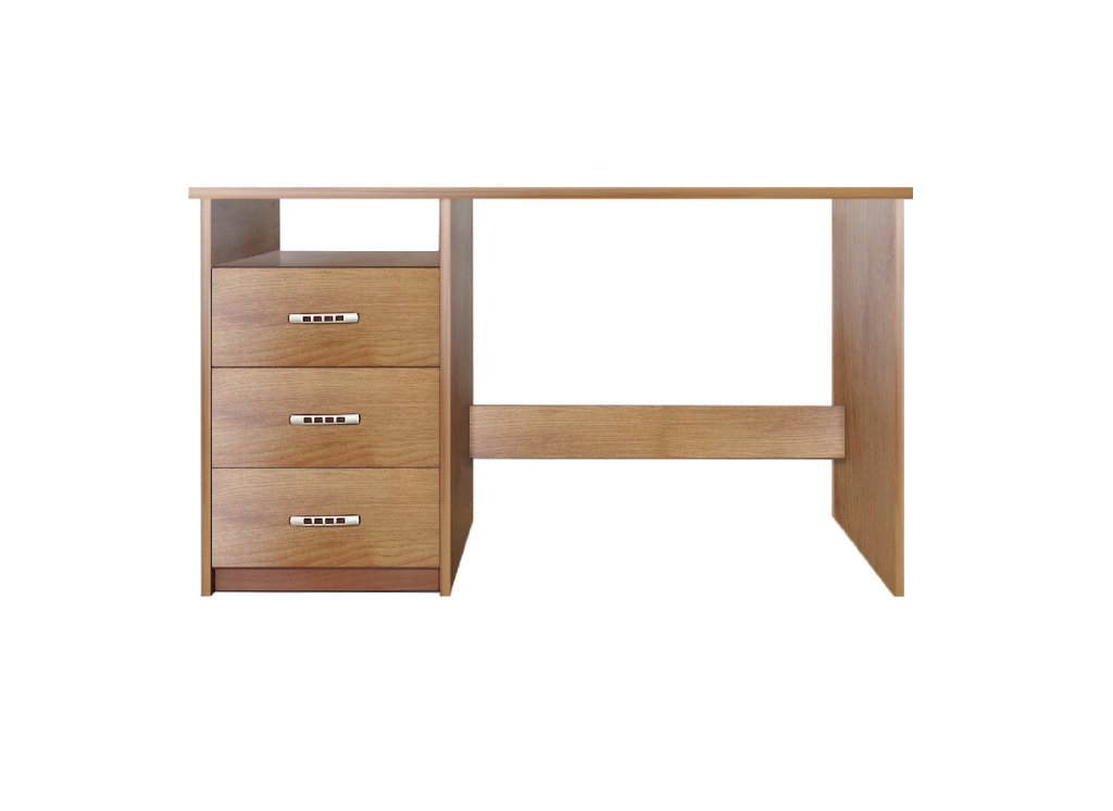 Стіл письмовий BIU 3S – приваблює своєю зручною конфігурацією. У ньому немає нічого зайвого, тільки все найнеобхідніше. Стіл з однією тумбою з широкою і просторою стільницею та однією полицею, яка розміщена одразу під стільницею. Тумба складається з тьох шухляд.