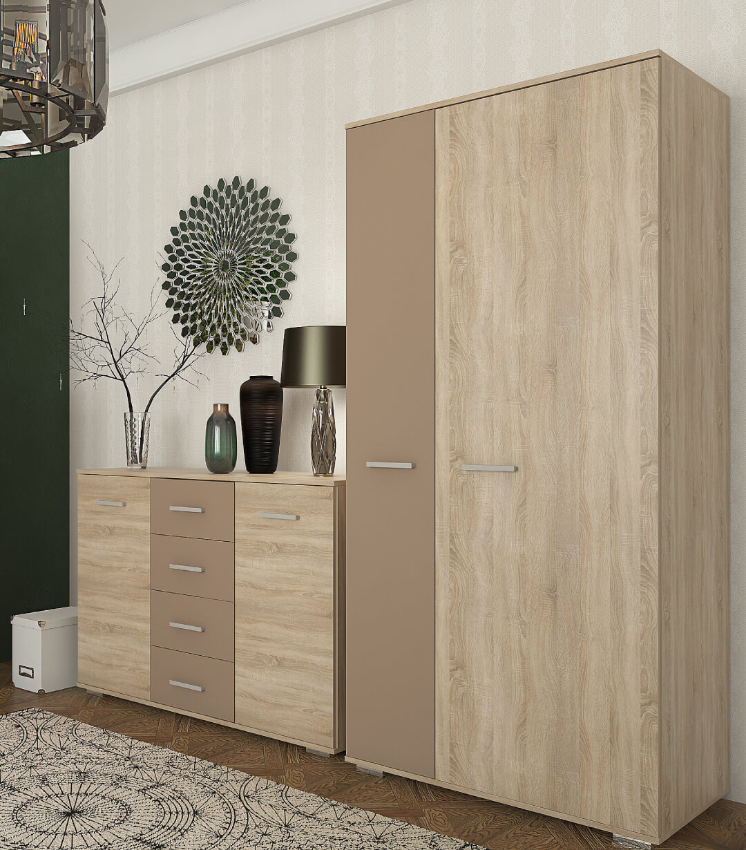 Популярність серед покупців вітальні “Ріо”, спонукало спонукали дизайнерів фабрики Сокме до створення нових елементів. У даній вітальні було додано комод та шафу. Тепер створити завершений та досконалий дизайн простору Вашої кімнати стало ще легше.