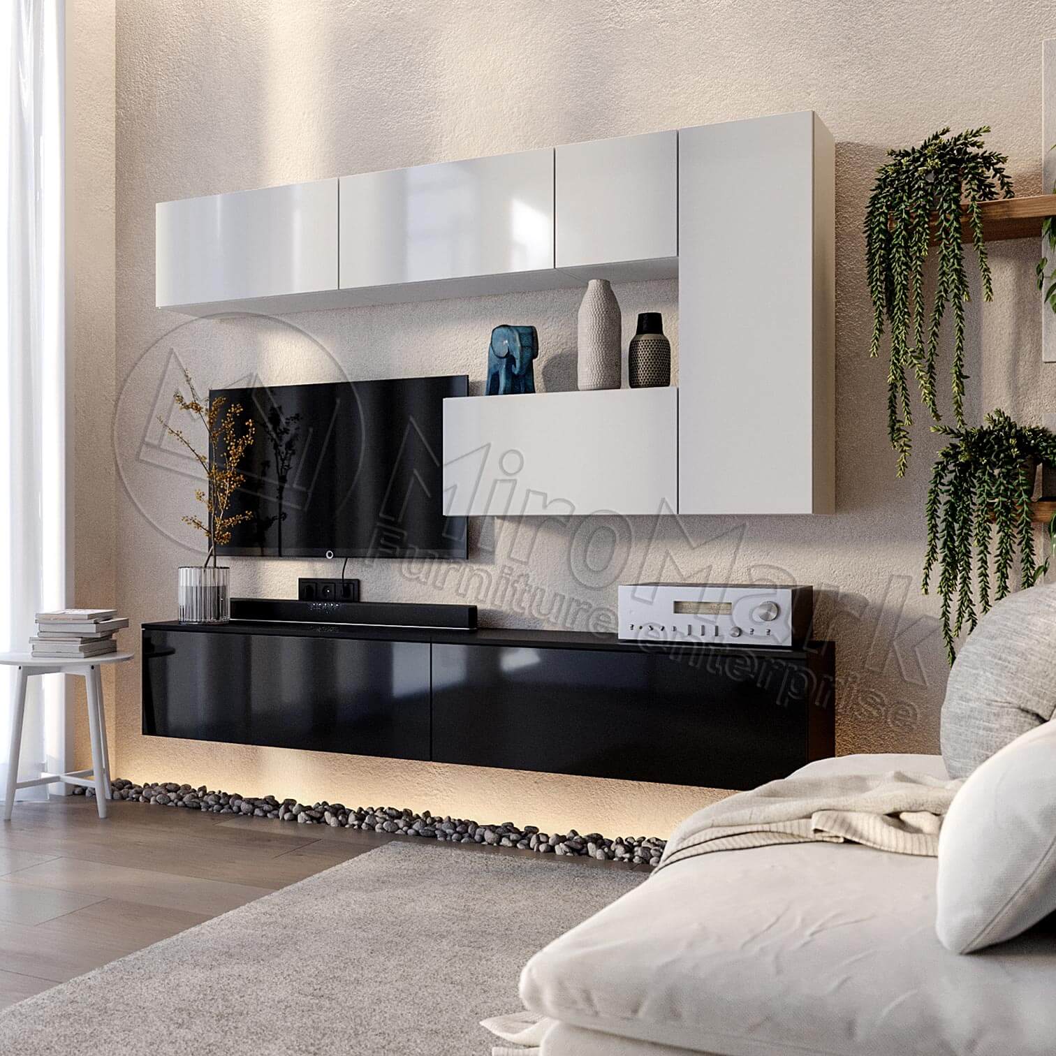 Механізм відкриття Push to Open; Завіса підвищеної міцності; Підіймач фасаду Raund; З`єднання деталей за допомогою ексцентрикової стяжки (MINIFIX); Базова комплектація горизонтальних секцій та тумб TV міжсекційними стяжками; Підвіс регульований для навішування секції; Універсальні дюбель-гаки для кріплення до будь-якого матеріалу.